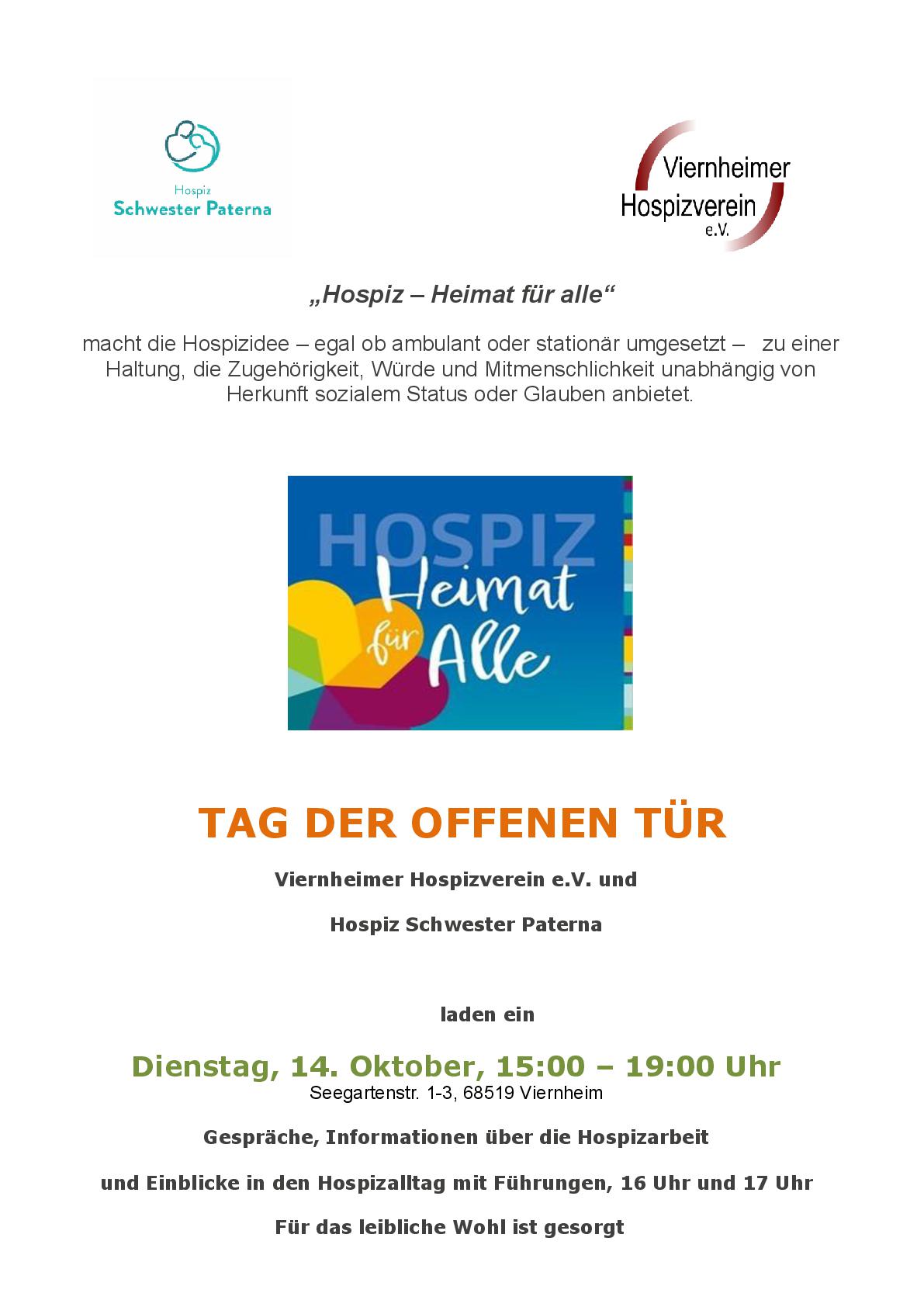 Das Hospiz Schwester Paterna und der Viernheimer Hospizverein öffnen ihre Türen…